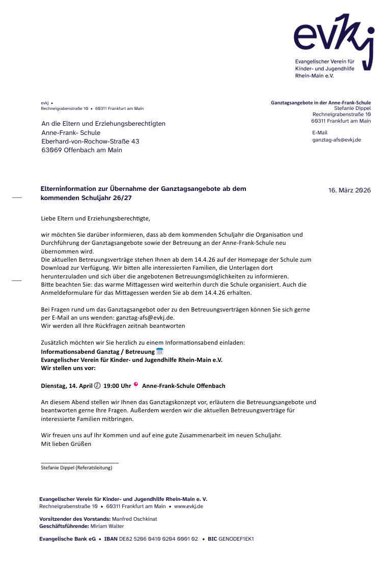 Elterninformation zum Ganztagsangebot 2026/2027